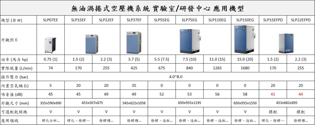 空壓機可保護昂貴的精密儀器及設備,避免油污阻塞及破壞,日本岩田無油渦卷式空氣壓縮機設備 100%可靠,安全,並獲得醫院,新藥實驗室,醫療氣體及醫療相關設備的認可採用。新藥研發或高科技科研發展的過程中,需要可靠的潔淨氣源,無油式空壓機可以提供無油、無水、潔淨、乾燥的空氣,以確保實驗室與研究中心所需要的空氣品質。