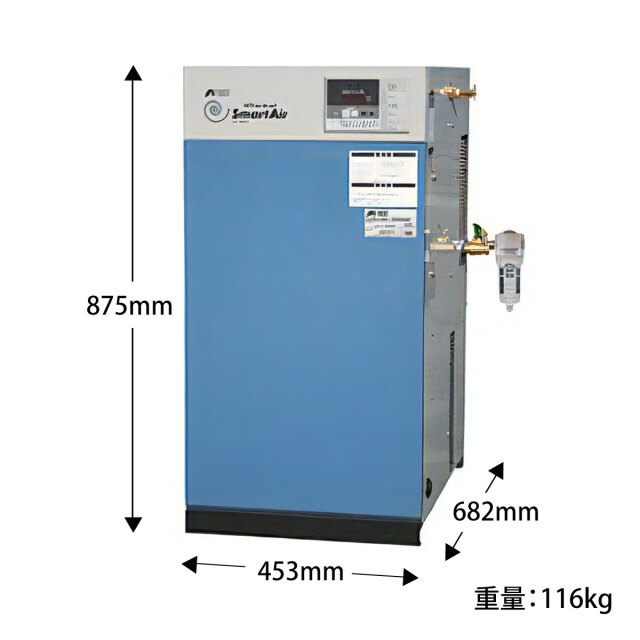 都會型實驗室空間寸土寸金。岩田提供的 All-in-One 機型,將空壓機主機、內置式乾燥機及儲氣桶高度整合。