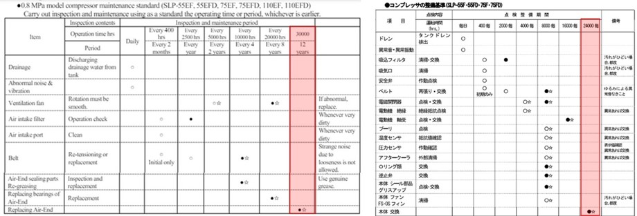 日本岩田無油渦卷式空壓機5馬力與3馬力機體設計壽命都在30,000小時以上 (正常環境) 而 7.5馬力與10.0馬力機體則是在22,500小時以上,5馬力機體模組設計壽命硬是比7.5馬/10.0馬力 高出25%長度的運轉時間壽命。