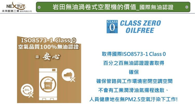 ISO8573-1 Class 0 百分之百國際無油認證與節能大賞