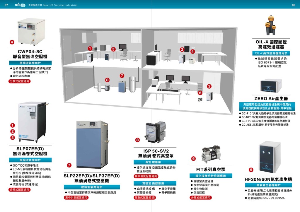 未來服務工業(股)公司規劃符合實驗室需求ISO 8573-1的壓縮空氣品質標準,應對較為嚴苛環境要求的科研實驗室應用。
