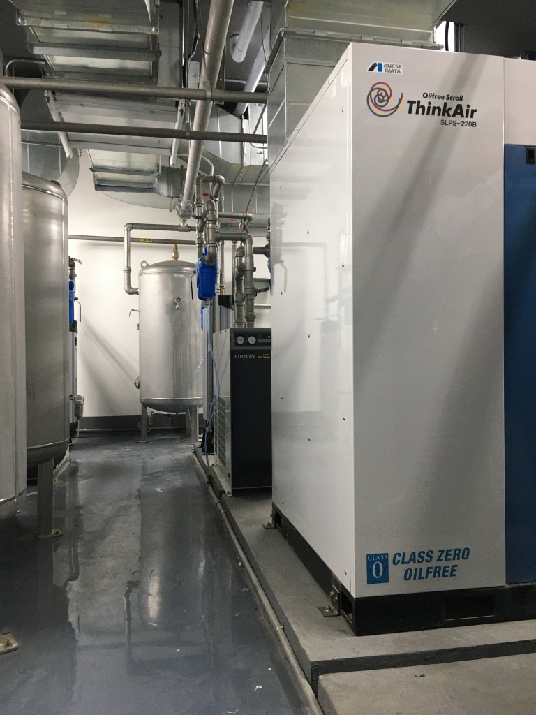 科研實驗室中有許多氣體的需求,一般會採用氣體鋼瓶來應對,但是如果用氣量需求較大且擔心人員進出頻率汙染實驗室場所,則會規畫設計On-Site氮氣產生系統 或者是 零空氣產生器…等來支持作業。包括 : LC-MS/MS 或是 GC-MS…等精密分析儀器都需要高純度的氮氣或者是零空氣提供給相關儀器使用,潔淨乾燥的壓縮空氣源變成是必要的Utility!