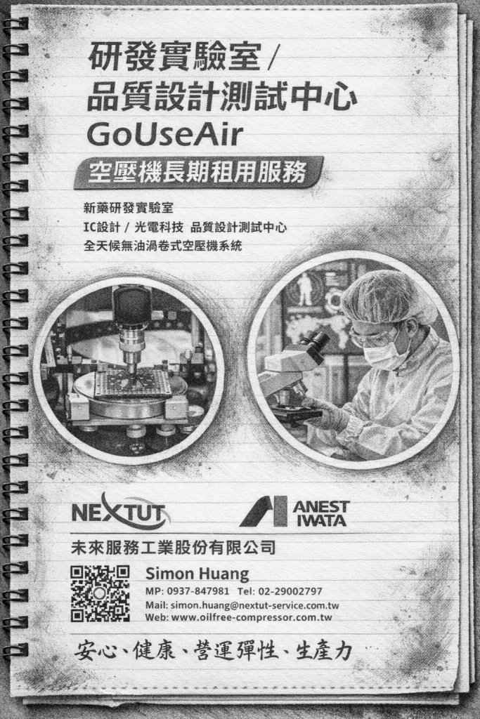未來服務工業(股)公司 深刻理解這些科研機構的痛點,推出了以 AaaS(Air as a Service 壓縮空氣即服務) 為核心的 GoUseAir Service,整合日本岩田(Anest Iwata)與福原(Fukuhara)的頂尖硬體,為臺灣的研發環境帶來一場靜默卻深刻的效率革命。