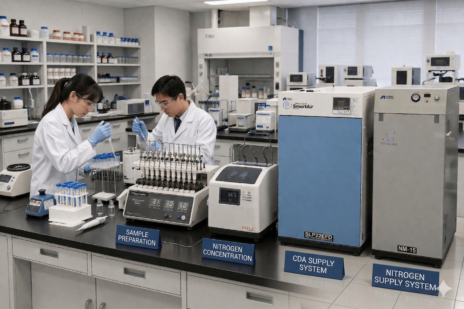 對於預算有限但使用量穩定的實驗室,「高品質無油渦卷 CDA + 膜式製氮」 的組合通常比昂貴的高純度 PSA 方案更具性價比,且能大幅降低鋼瓶更換的風險與壓力波動。