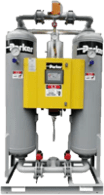 - 管路前置過濾器 (Pre-filter或稱粉塵過濾器):過濾精度有3µm等級以及1µm等級兩種,通常放置在乾燥機入口前面來避免較大固態顆粒進入冷凍式乾燥機熱交換器銅管磨損毀損。通常我們只會安裝一組1µm玻纖材質的管路前置過濾器,因為3µm前置過濾器通常濾芯材質多是紙纖,放在乾燥機前面濾材很容易含水飽和造成較大的壓降。