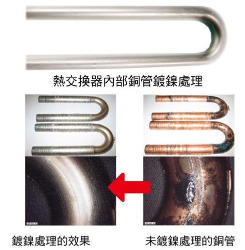 熱交換器銅管經過鍍鎳的表面處理,能夠更耐得住壓縮空氣高速磨擦與脈衝的工況,能夠確保冷媒不漏而保持極佳熱交換效果,