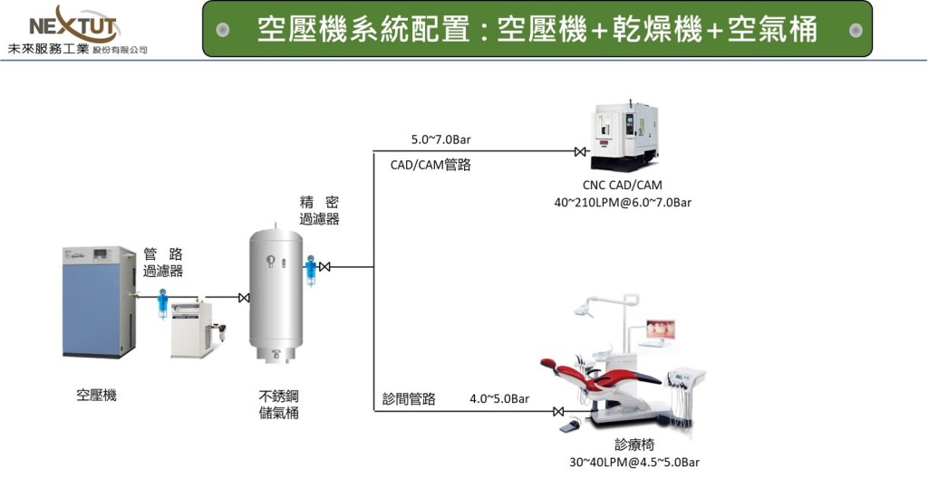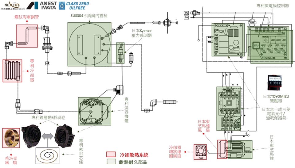 乾式無油渦卷式空壓機系統流程圖