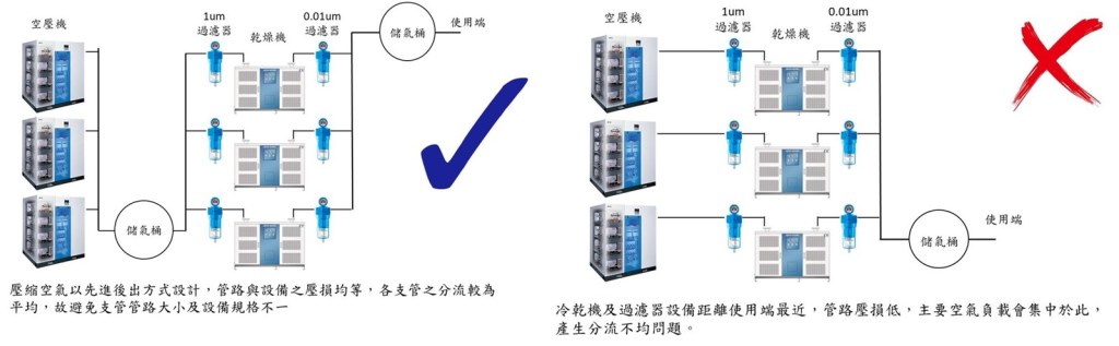 乾燥過濾裝置: 建議選用規格一致的過濾系統,避免因壓降不同導致分流不均,確保輸出端氣體品質恆定。
