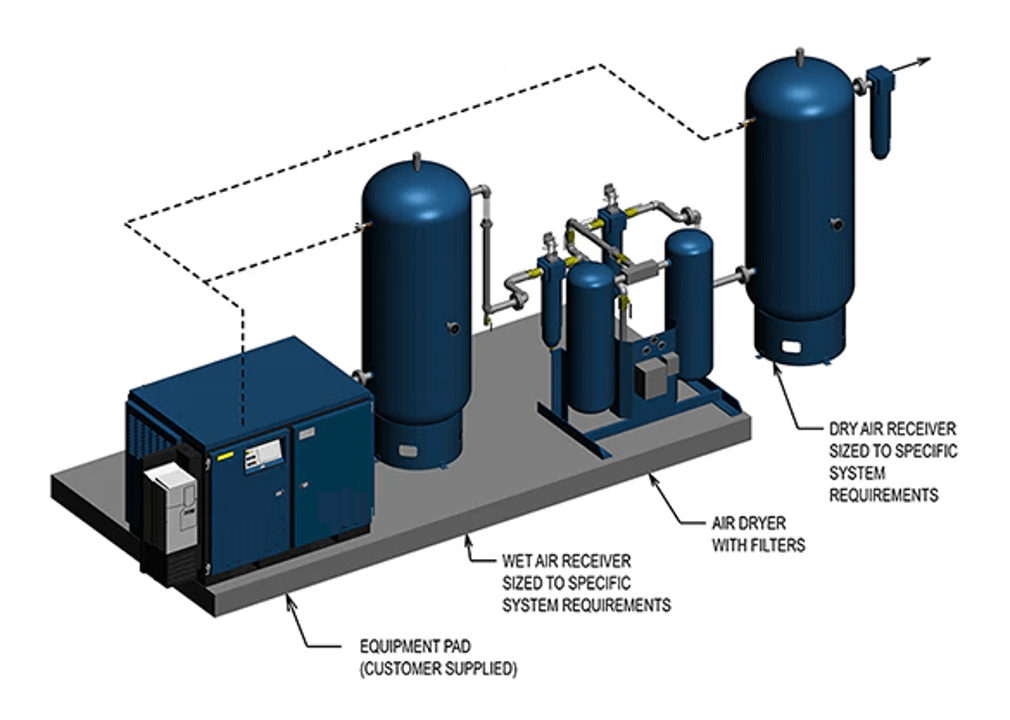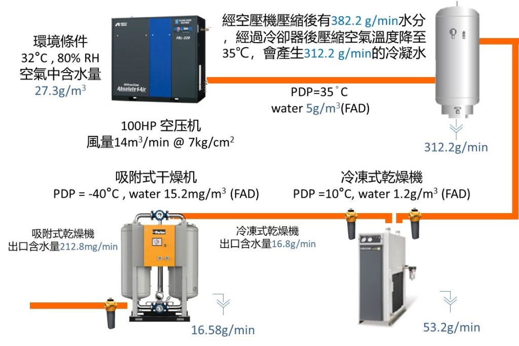 * 乾桶(2/3 總容量): 置於乾燥機後,負責及時供氣緩衝與維持壓力穩定。