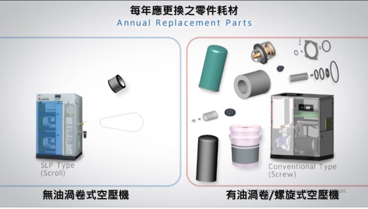 而大多數情況是科研實驗室成員想要使用好的產品系統,但是機構或公司有每年的預算限制,這些年度預算可能可以買到一些種類的空壓機系統設備,但是成員卻不想後面需要處理品質問題或故障毛病問題,如此就可以採用 UtilityBuyOut Program (請參考上圖右頁) 來鬆綁年度預算帶來的限制問題,而不需要屈就於不符合自己較佳選擇的產品系統。