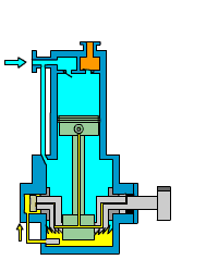 活塞變位量Displacement (理論排氣量) 是424L/min.,在8 bar時實際排氣量是220L/min.;從上圖曲線來分析,如果操作壓力是 4 bar 時顯示的實際排氣量每分鐘是多少 Liter?從壓力是 4 bar 的地方往上畫一條垂直線到 60Hz 頻率的曲線,然後從這個點位再劃一條水平線向左延伸至實際風量的位置,在操作壓力 4 bar 時實際排氣量約為275L/min.。換句話說,同一組商用型活塞式機體,在操作壓力 4 bar 時實際風量為275L/min.,在操作壓力 8 bar 時實際風量為220L/min.。選型的時候需要先釐清需要用氣設備到底最少要多少操作壓力才能夠順暢運轉。