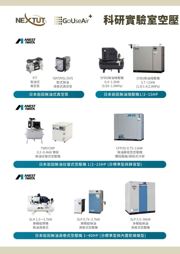 獲取更多關於日本岩田無油式空壓機在科研實驗室的各種應用? 歡迎至 總代理未來服務工業 科研實驗室空壓機系統專業網站 http://www.oilfree-compressor.com.tw 搜尋!