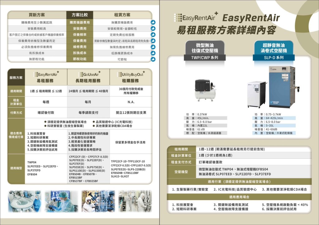 取得更多科研實驗室壓縮空氣與氣體、增壓與無油式真空泵的情報? 歡迎到 科研實驗室空壓機系統 http://www.oilfree-compressor.com.tw 專業網站看看!