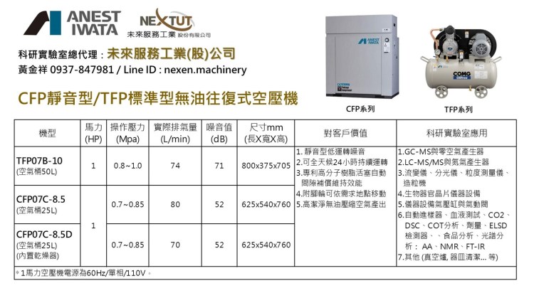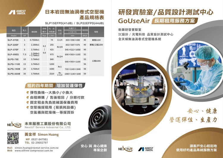 閱讀更多日本岩田無油式空壓機在科研實驗室各項應用? 歡迎到 未來服務工業 科研實驗室空壓機系統專業網站 http://www.oilfree-compressor.com.tw 看看!