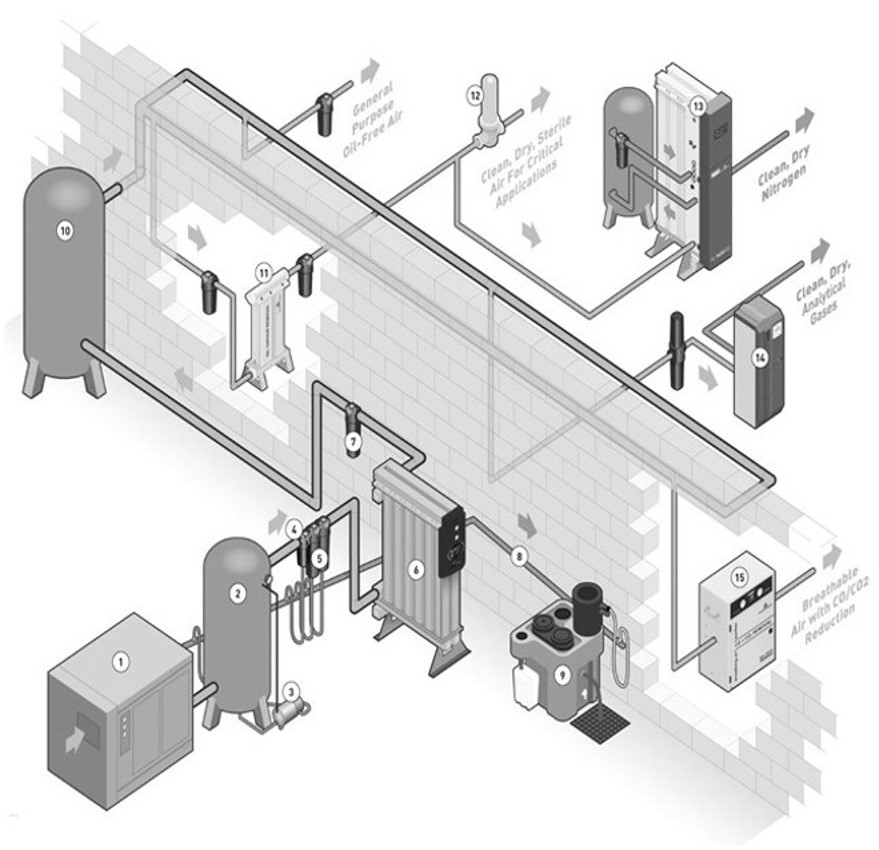 • 濾芯、乾燥機、排水系統需要定期更換和檢查,否則可能影響氣體品質。