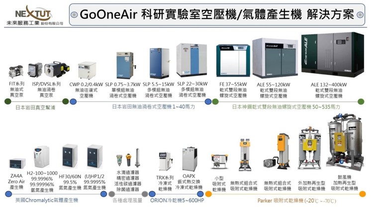 新藥實驗室與半導體光電科研實驗室投入研發以及品質驗證動則投入數百萬元甚至數千萬元新台幣的高強度資本支出投入,應用上除了壓縮空氣品質必須滿足要求的規範之外,不論是有工廠產線或者是位於科技廠辦/商辦的獨立實驗室則受限於空間與應對整個實驗系統,逐漸較難以採取一台實驗室精密儀器設備由一套空壓機系統對應的方式。
