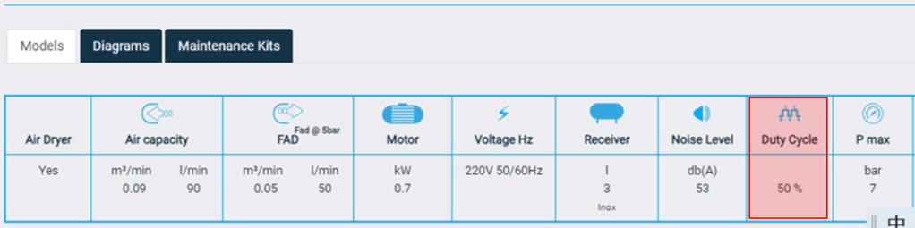 空壓機Duty Cycle運轉負荷能力